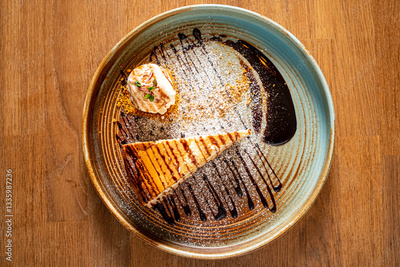 A decadent dessert showcases creamy cake and whipped icing artistically arranged on a plate