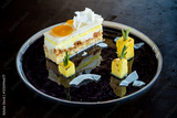 Savor a slice of vegan pineapple coconut cake adorned with fresh toppings and tropical garnishes