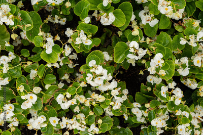 A vibrant display of white flowers flourishes among rich, green foliage under the sun's embrace