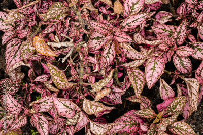 Vibrant pink leaves of exotic plants create a stunning visual experience in a garden