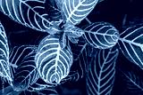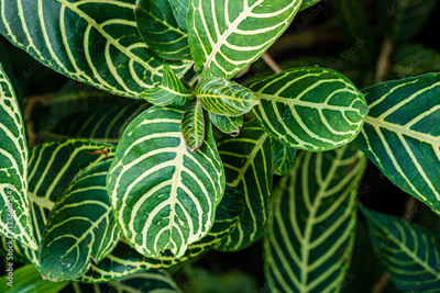 Dense foliage reveals captivating patterns on leaves while sunlight enhances their vibrant colors