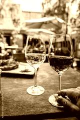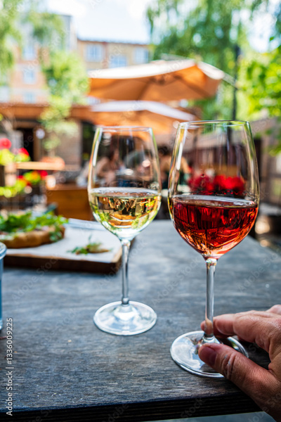 Refreshing wines catch the sunlight as friends gather for a delightful afternoon in the garden