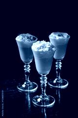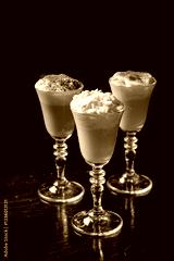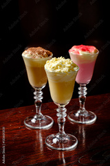 Three elegant dessert shots stand proudly on a wooden table, ready to be savored