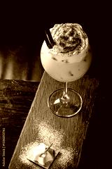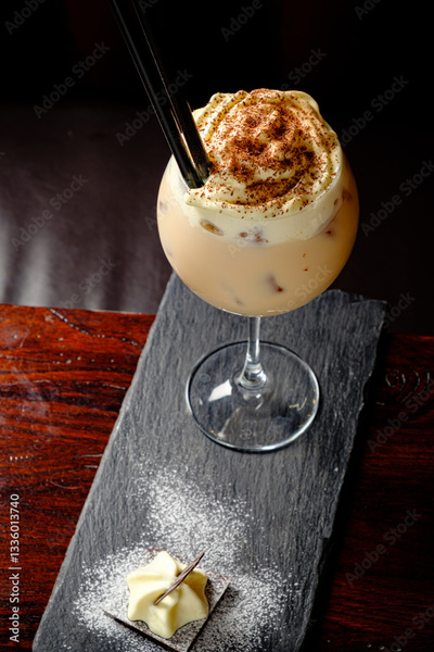 This creamy dessert drink is topped with whipped cream and spices, plus a buttery treat