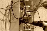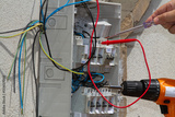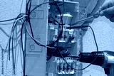 electrician at work with an electric panel