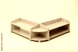 A beautiful set of three wooden shelves elegantly displayed on a white surface