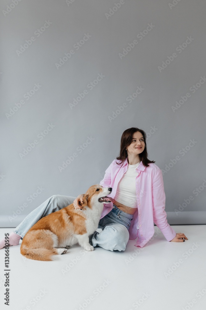 A Joyful and Delightful Moment Captured with a Corgi in a Vibrant Studio Setting
