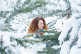 Winter portrait. red-haired girl. trees. snow. bright hair. winter