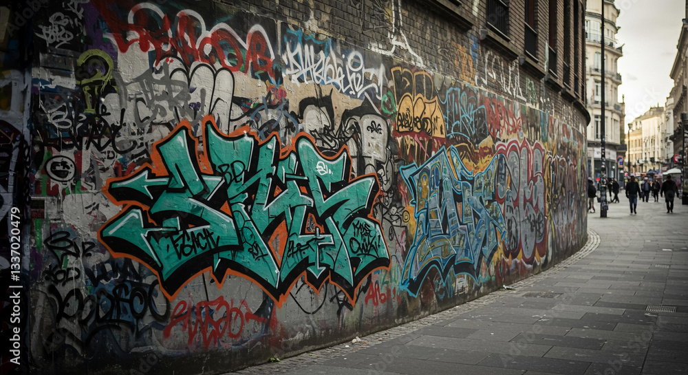 Vibrant Urban Street Art Graffiti Wall Cityscape Background
