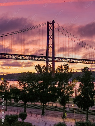 Golden Sunrise Over the Iconic 25 de Abril Bridge