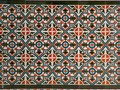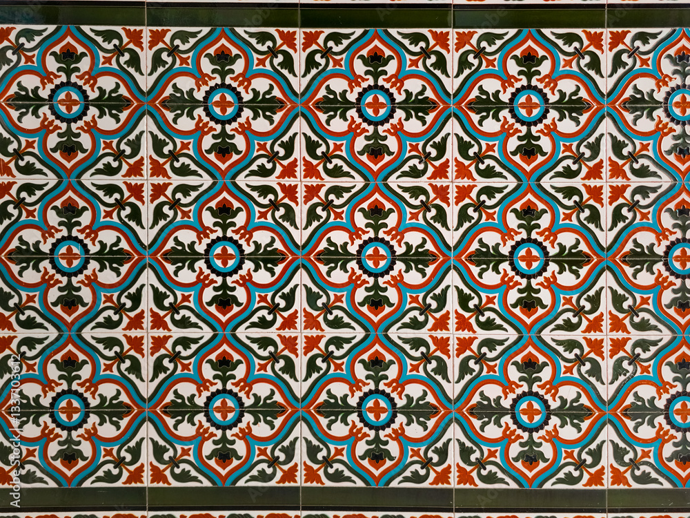Seville style ceramic wall pattern, floral motifs, intricate geometric patterns