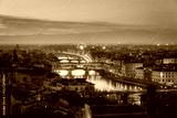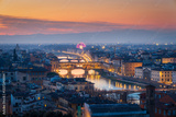 Florence, Italy - skyline view from Piazzale Michelangelo over Arno river with Ponte Vecchio at night