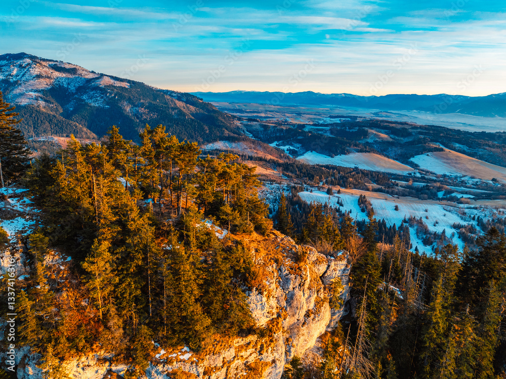 Sunset over Liptov region in the backround with Liptovska mara lake and Tatras mountains around. Liptovsky mikulas landspace, slovakia.
