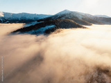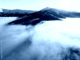 Winter hiking to Sina in Low Tatras National park near jasna is full of beautiful views. Sunset in Slovakia mountains with Chopok peak.