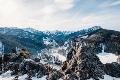 Winter snow Hiking near city of Zakopane wit view of poland Tatras mountains from Nosal peak, Poland