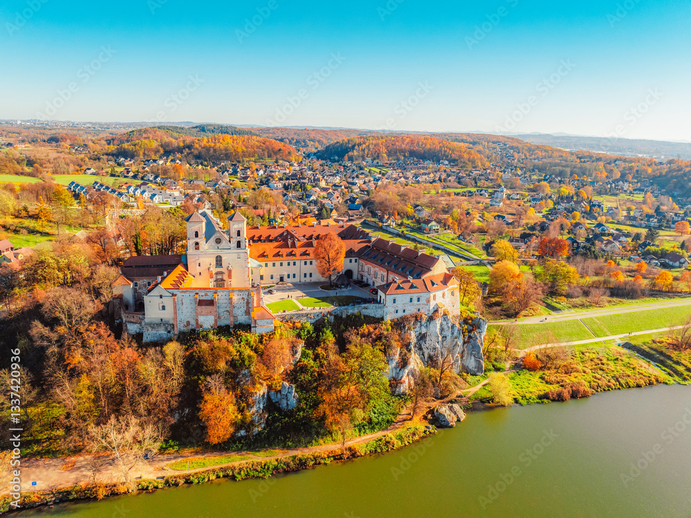 Benedictine abbey, monastery and church on the rocky cliff and Vistula river. Tyniec near Krakow, Poland.