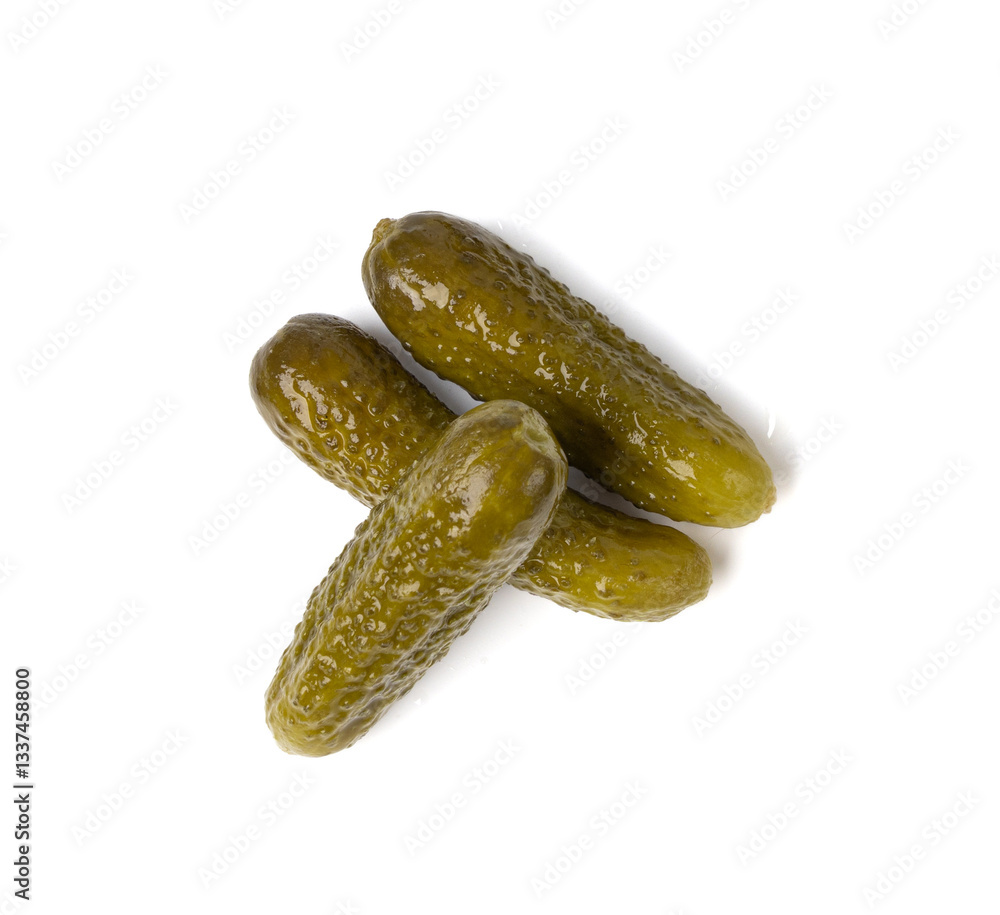 Gherkins isolated, pickled small cucumbers, tiny fermented food, little marinated canned vegetables