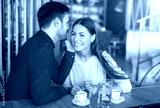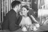 Beautiful loving couple flirting in a cafe. Love and romance. Da