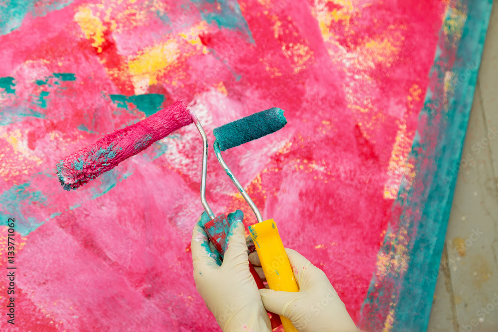 Two clips with red and green paint in the hands