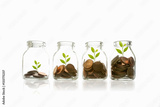 Coins and plant in bottle, business investment growth and saving concept.