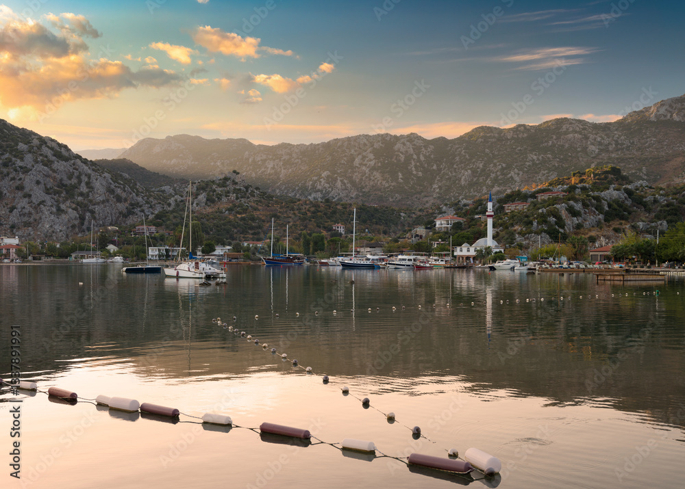 Morning in the famous Selimiye holiday village of Marmaris. Mediterranean beaches for holidays in Turkey. Mugla province
