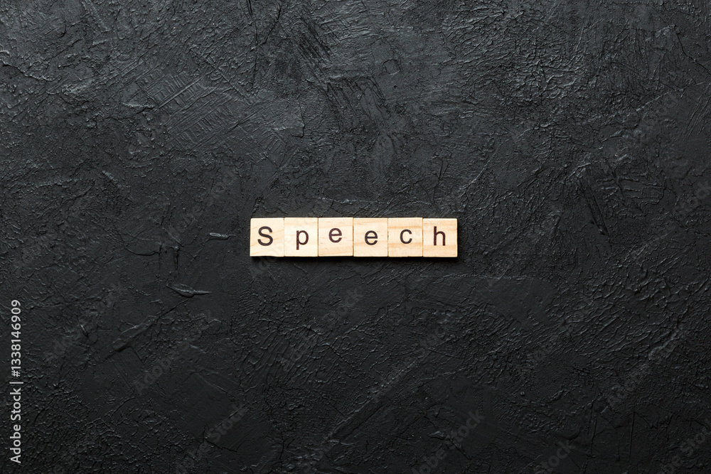 speech word written on wood block. speech text on cement table for your desing, concept