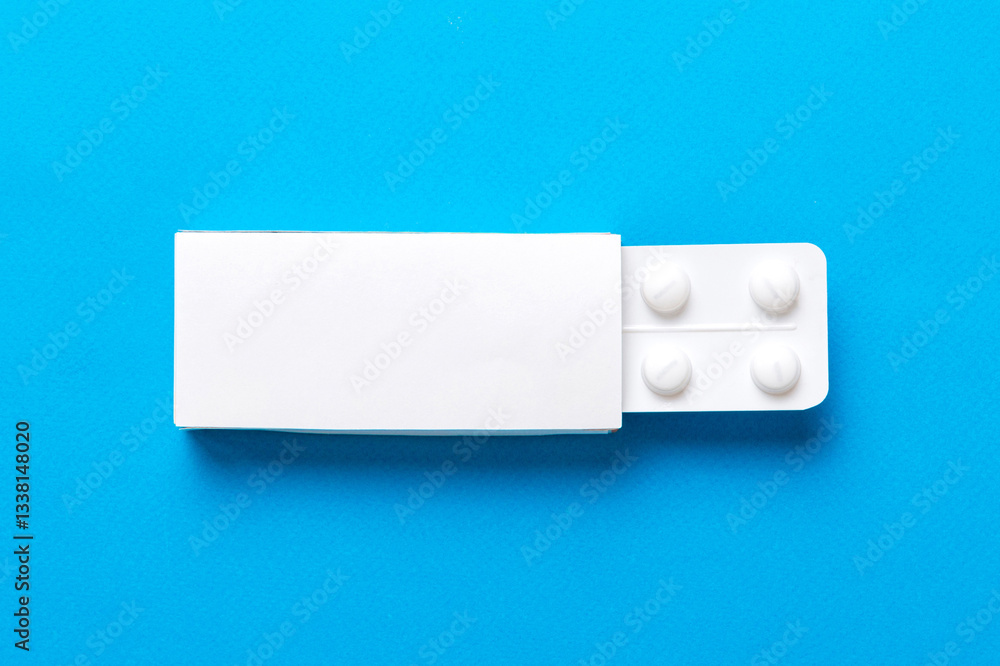 Blank White Product Package Box Mock-up. Open blank medicine drug box with blister top view