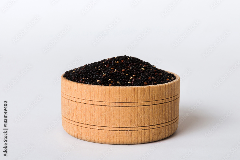 quinoa seeds in bowl on colored background. Healthy kinwa in small bowl. Healthy superfood