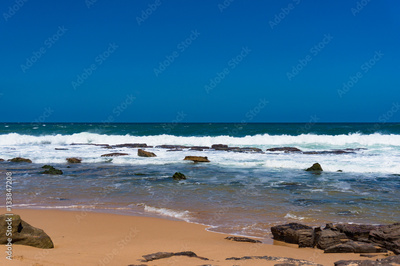 Blue ocean and clear sky, sand beach background