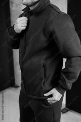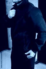 A man dressed in a stylish blue jacket has his hand placed in his pocket