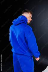 A man is currently dressed in a blue hoodie along with matching blue sweatpants