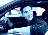 Handsome young man sitting in a car.