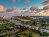 Alcalá de Guadaíra Castle: A Study in Moorish & Gothic Design, square towers, battlements sunset cloudy sky