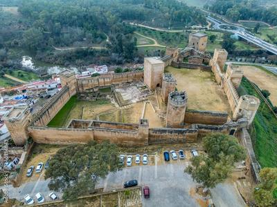 Aerial view of Moorish and Gothic Architecture in Alcalá de Guadaíra Castle