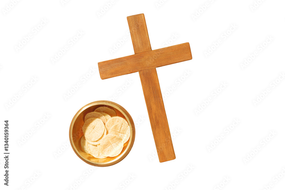 PNG, Eucharist, wooden cross with host plate, isolated on white background
