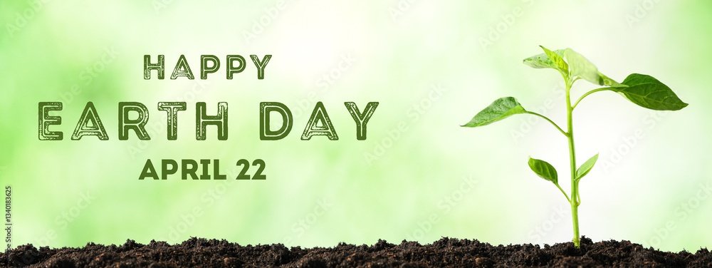 Earth Day, sprout on green background, with text