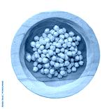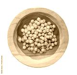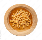 Soaked chickpeas, chick pea in water, swollen wet Cicer arietinum fruits, garbanzo beans cooking