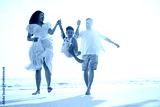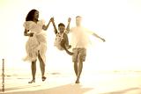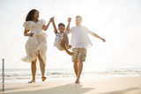 Asian family beach vacation. Children parent relax together. People lifestyle.
