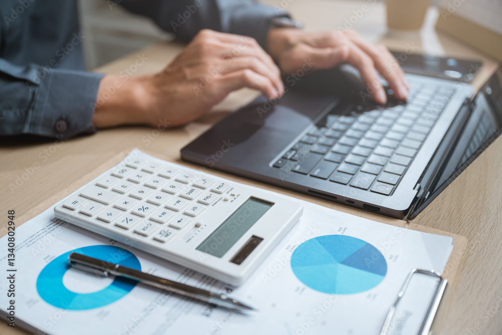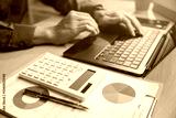 Accountant used a calculator financial analysis managing payroll tax accounting budget accounts.