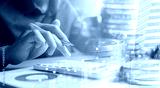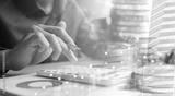 Accountant used a calculator financial analysis managing payroll tax accounting budget accounts.