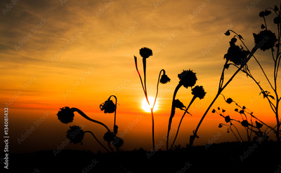 Flowers on the sunset background