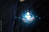 Businessman using CRM to analyze customer behavior allows businesses to refine marketing strategies and boost sales effectively. Customer relationship management concept.