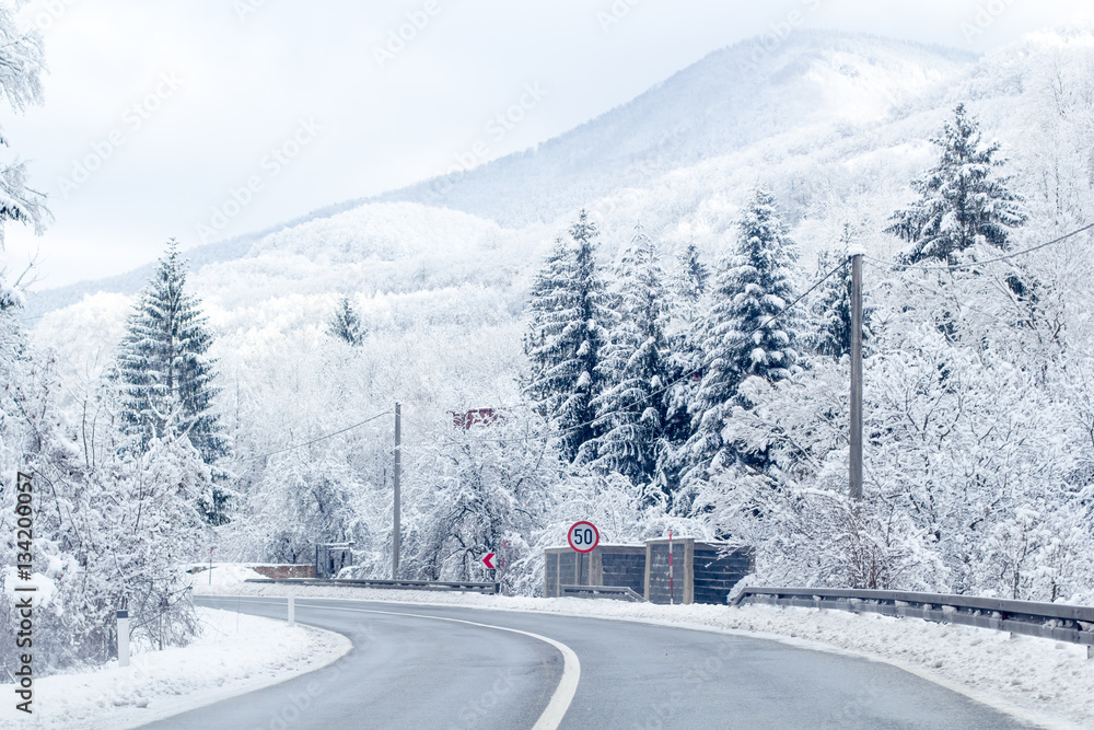 Snowy road in winter