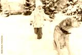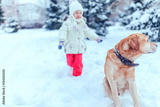 Christmas happy teenager playing dog on snow