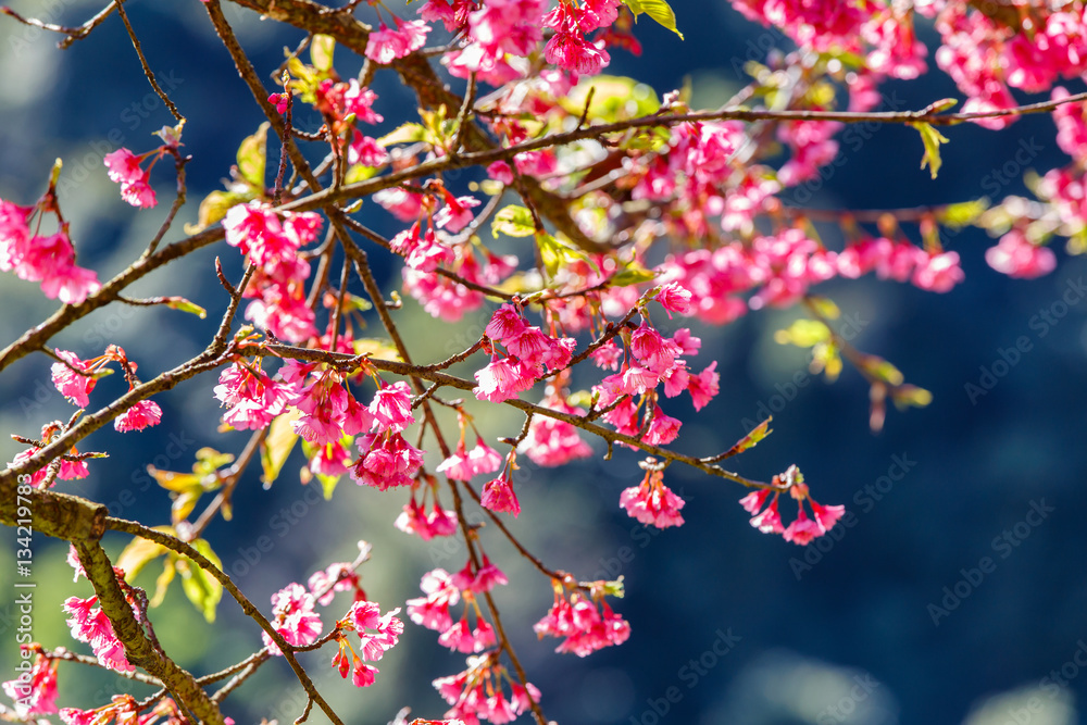 Close up branch of pink cherry blossom at Chiang Mai, Thailand