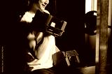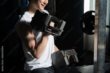 ダンベルで筋トレをする日本人男性