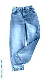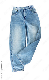 Blue jeans isolated on white, denim wide leg pants cutout.Trendy trousers front view.
