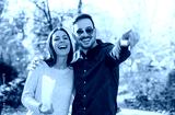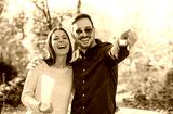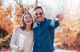 Loving couple on dating in the autumn park. Love and romance.
