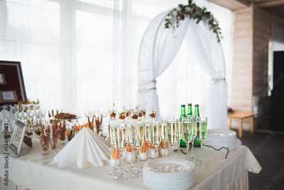 Стол сервирован к свадебному торжеству
