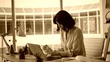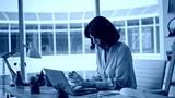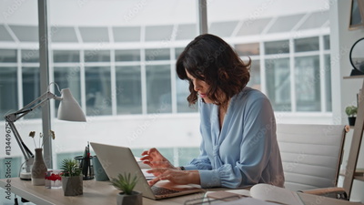 Focused businesswoman typing laptop in office closeup. Serious lawyer working
